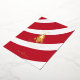 This Christmas card contains a mixture of geometric, Art-Deco-like style with a looser, casual appearance. Featuring a candy cane pattern background, it also has metallic foil portions and a customizable sender name. The sender name can be altered by clicking on the blue "Personalize this Design" button.