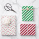 Stylish and fun, these wrapping paper sheets are a great way to wrap a gift for that special someone for their birthday or the holidays. There are three design options: 1. red and white candy stripes pattern, and2. green and white candy cane stripes pattern, and 3. red white and green chevron pattern.