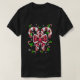 I give wanted to give this a 4 instead of a 5 because these Basic DARK T0shirts run unexpectedly SLIM or Narrow. Which is great if you do not have a potbelly, but I have a paunch. It isn't the shirt's fault that I've got a beer belly. The design and shirt itself is a quality cotton shirt. The color is more of a deep purple, but still a very pretty color. The Basic DARK T-shirts run a bit SLIMMER than the Basic Ts. The neck is a fraction narrower (or seems to be narrower) also. I'm a paunchy middle-aged woman and my neck is 12 inches (31cm) thick and the neckline fell about the same as in the photo of the man, and I had the desire to tug it a bit. So if you're a thick necked man or like loose shirts, be aware these are slimmer shirts. Once I get rid of my lockdown paunch it'll look great. The shirt washed well in cold water with no apparent bleeding. We don't have a dryer, so it hung dry. Did not shrink. Love the colors and the design. The design looks smaller on my shirt than it does on the model on-line. But still, it looks good on the shirt. The printing looks as it does on the model, just the size seems fractionally smaller. Washed garment in cold water, hung dry and design appeared unaffected.