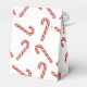 Custom favour boxes with candy cane inspired shapes in red, green and white.