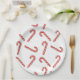 Custom paper plates with candy cane inspired shapes in red, green and white.