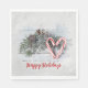 Christmas candy cane heart and pine branch on silver snowflake background.