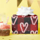 Christmas candy hearts in snowflakes on a red and black buffalo plaid background.