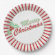 Decorate your Christmas party with these paper plates featuring a red and green candy cane stripe edge, holly leaves and berries and a retro "Merry Christmas" in the centre.