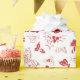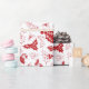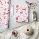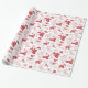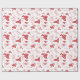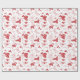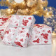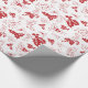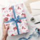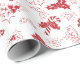 White holiday wrapping paper featuring a red pattern of holly leaves and berries on a white background with a bit of retro style.