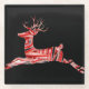 Candy Cane Reindeer on Black, sleek Christmas Glass Coaster