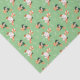 This fun Holiday tissue paper has a fun pattern of Santa Claus and one of his elves, each riding a red and white striped candy cane. The pattern is placed on a Christmas green background. Fun for kids of all ages!
