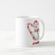 Celebrate the sweetness of the season with a Candy Cane Snowman Christmas Coffee Mug! This adorable Christmas coffee mug features a cheerful snowman holding a classic red and white candy cane, and wearing a festive red and white scarf and hat. Easily customise it with any name to make it a perfect holiday gift, Christmas present, or a sweet way to enjoy your favourite warm beverage.