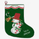 Here's a colourful snowman image personalised Holiday Stocking that will please any child! It features an adorable snowman wearing a top hat and carrying a red and white striped candy cane which is tied with a pretty green bow. Behind him is a white ribbon with holly and a gold bell. The images are placed on a dark holiday green background. Cute! Your child's name is in green on a white and red scalloped border at the top of the stocking. A second text field is on the toe; make it say whatever you'd like!