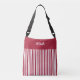 Bright red and white stripes in different widths give a festive and merry touch to your holidays with this crossbody bag. Very simple and minimalist. A wide, red color block at the top holds your name and monogram.