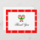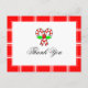 A cute Thank You postcard with candy canes against a red and white background.