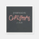 Bring festive flair to your holiday table with these personalised Christmas party napkins! Featuring playful candy cane lettering, a deep charcoal background, and customisable family name and year, these napkins add a stylish, coordinated touch to your gathering.