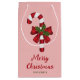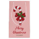 Candy Cane With A Bow And Christmas Holly On Pink Small Gift Bag
