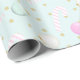The light mint green hue evokes a sense of freshness and tranquillity, symbolising the serenity of the holiday season. The playful combination of gold polka dots, pink and white candy canes, as well as pink and green Christmas ornaments, adds a modern twist to traditional holiday motifs. Imagine your gifts wrapped in this chic design, nestled under the soft glow of holiday lights, creating a scene of modern luxury and festive delight.