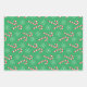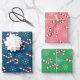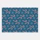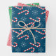Candy canes and snowflakes pattern Holiday wrapping paper sheets . One is blue , one is pink and one is green . Great for wrapping gifts for kids or grownups .