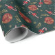Candy Canes Snowflakes Red Christmas Balls Green Wrapping Paper
