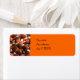 Halloween themed address labels featuring a close up photo of candy corn with an orange background.. Background colour, font, and text are all customisable.