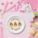 Paper plate design features an original marker illustration of a row of candy corn candies, with TRICK OR TREAT in a fun font. Great for Halloween parties and celebrations! Coordinating Halloween and trick-or-treat themed napkins, cups, and tablecloths available.