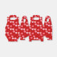 A pattern of ubiquitous candy conversation hearts reading “Love You”, “Be Mine”, "Kiss Me", "XOXO" and “Hug” in red, rose, and pink cascading over a Valentine red background