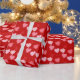 A pattern of ubiquitous candy conversation hearts reading “Love You”, “Be Mine”, "Kiss Me", "XOXO" and “Hug” in red, rose, and pink cascading over a Valentine red background