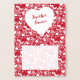 Golden anniversary note card (gold or silver metallic foil) with a drawing of candy heart shapes surrounding a pure white heart with the name of bride and groom on the front, or a short greeting. Hearts are repeated on the inside the card in a bright red colour with "Together Forever", or personalised with any short message in calligraphic script lettering. Finish the card with a handwritten note in the blank space provided to write a message for a wedding anniversary, spouse's birthday, Valentine's Day or a simple note card for any occasion.