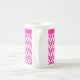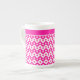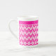 A very pretty Bone China Coffee Mug, with a pattern of decorative chevron shapes in candy pink and white. You can add text to the plain band at the top or just leave it plain.