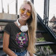 But don't let the skulls fool you - this t-shirt is far from ugly. The bright and floral details add a touch of femininity, making it a fun and fashionable choice for any woman. Plus, with its black background, it's easy to mix and match with your favourite jeans or skirts.