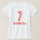 candy stick and a text in Russian: конфеты, that can be translate to: candy. You can customise this white t-shirt to change it fonts type, font colour, t-shirt type and t-shirt colour, and give it you own unique look.