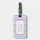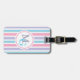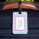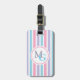 Pastel blue, purple and pink candy striped personalised luggage tag. Make your bag stand out. Personalise with your initials on front and contact details on reverse.