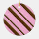 Diagonal candy stripes of dark chocolate brown on a light strawberry pink background ceramic ornament