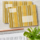 Trendy yellow striped design features a variety of shades of yellow vertical stripes with white accents and our signature dry brush texture. Custom designs available.