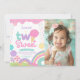 Candyland 2nd Birthday 'Two Sweet' invitation with Photo, featuring doughnuts, sprinkles, lollipops, rainbows, and ice cream—this theme is one of the all-time favourites for kids! With its vibrant colours, it will be a super fun party to plan. Please check the collection for matching items.