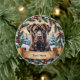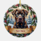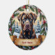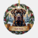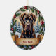 A beautiful, ultra-detailed Christmas ornament design featuring a realistic portrait of the breed centered within a soft, festive winter frame. This elegant design includes pine branches, red berries, and snowflakes against a snowy backdrop, illuminated by warm holiday lighting. The balanced, round composition includes clear space below the dog for customization.