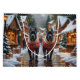 This festive design captures the joyful spirit of the holiday season, featuring an adorable dogs.Nestled in a winter wonderland, complete with a decorated Christmas tree, and beautifully wrapped presents. Snowflakes gently fall, adding a magical touch to the scene, while the vibrant colours of the holiday decorations create a warm and cheerful atmosphere.