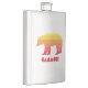 The product is a good size and came exactly as it was pictured. The lid is not attached to the flask, which could be dangerous on drunken nights... The print came out surprisingly well and looks very sharp. Would definitely recommend.