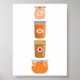 This mixed jams poster has a several typical canning food jar filled with six different types of jams in a simple graphic style with a fruit jams labels in several orange colours. See the collection to mix and match this mixed jams print with other canned food prints. You can make the Pineapple Jam print larger or smaller or transfer to other wall products.