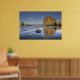 Cannon Beach Haystack Rock Low Tide in Oregon Coast along Pacific Ocean with Blue Sky Reflection Poster