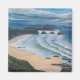 The painting depicts a foggy and cloudy day on the coast with the rhythmic waves lapping onto the beach.