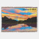 A canoe crossing a mountain lake reflecting the beautiful oranges and blues of a colourful sunset. Add your own text.