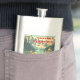 The product is a good size and came exactly as it was pictured. The lid is not attached to the flask, which could be dangerous on drunken nights... The print came out surprisingly well and looks very sharp. Would definitely recommend.