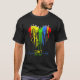 I give wanted to give this a 4 instead of a 5 because these Basic DARK T0shirts run unexpectedly SLIM or Narrow. Which is great if you do not have a potbelly, but I have a paunch. It isn't the shirt's fault that I've got a beer belly. The design and shirt itself is a quality cotton shirt. The color is more of a deep purple, but still a very pretty color. The Basic DARK T-shirts run a bit SLIMMER than the Basic Ts. The neck is a fraction narrower (or seems to be narrower) also. I'm a paunchy middle-aged woman and my neck is 12 inches (31cm) thick and the neckline fell about the same as in the photo of the man, and I had the desire to tug it a bit. So if you're a thick necked man or like loose shirts, be aware these are slimmer shirts. Once I get rid of my lockdown paunch it'll look great. The shirt washed well in cold water with no apparent bleeding. We don't have a dryer, so it hung dry. Did not shrink. Love the colors and the design. The design looks smaller on my shirt than it does on the model on-line. But still, it looks good on the shirt. The printing looks as it does on the model, just the size seems fractionally smaller. Washed garment in cold water, hung dry and design appeared unaffected.