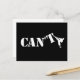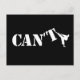 This unique design for Postcards depicts the word "Cant" with the "T" at the end being destroyed by a karateka to form the word "Can". It is a creative symbol of perseverance. The design for Postcards features a white typography with the wording cant and an illustration of a karate fighter throwing a kick.