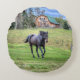 Cantering Black Percheron Horse Equine Photo 2 Round Cushion