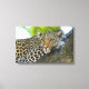 Canvas wall art shown with a photo print of a beautiful wild leopard cat in a tree.