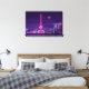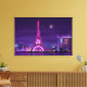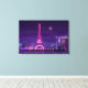 Canvas wall art shown with a art print of a Paris city scape in purple colour hues. Customise this item or buy as is.