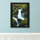 Canvas Art shown with a photo print of a beautiful waterfall in the mountains. Canvas has a black border.