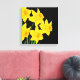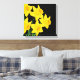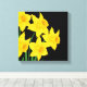 Wrapped canvas art is shown with a graphic print of pretty yellow daffodils on a black background colour.