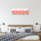 Wrapped canvas art is shown with a graphic print of pretty red and pink flowers on a white background colour.