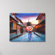 This stretched canvas wall art is shown with a photo print of a women walking in Japan.