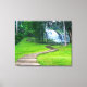 This stretched canvas wall art is shown with a photo print of a beautiful waterfall scene in Thailand.